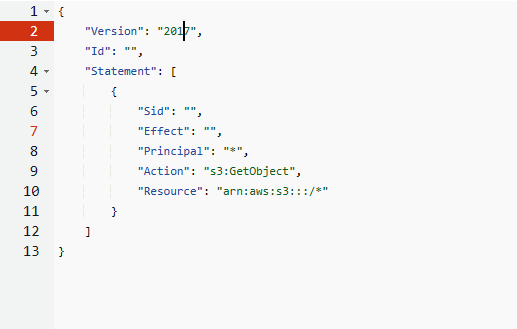 권한 탭에 들어가서 버킷 정책 클릭 후 버킷 ARN을 복사해두고