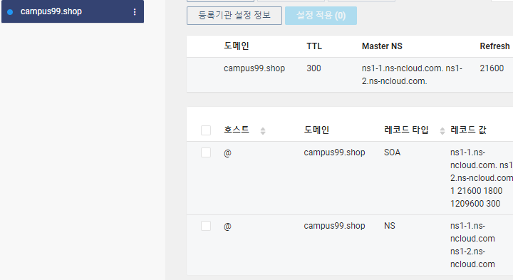 도메인 설정이 완료 된다. (ex. ns1-1.ns-ncloud.com ns1-2.ns-ncloud.com)