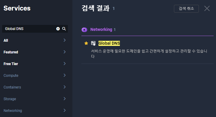 3. 접속해서 services 탭에서 global DNS 검색 후 접속 한다.