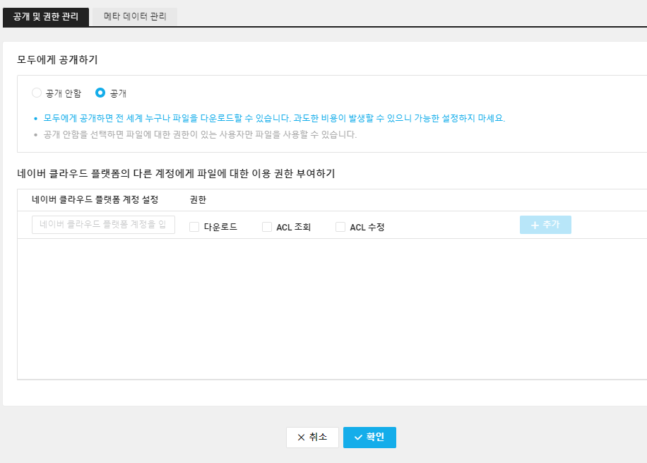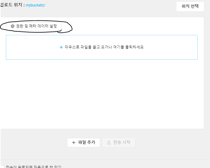 3. 정상 적으로 완료 했으면 index.html 파일 업로드 할 때 권한 및 메타 데이터 설정 클릭, 공개 클릭 후 업로드 진행