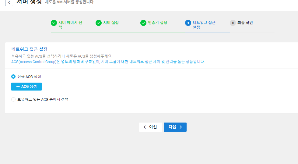 4. 신규 ACG 생성 버튼 클릭 후 -> 아래 처럼 등록 한다. 최종 검토 후 생성