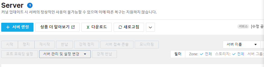 1. 콘솔에서 서비스에 server 검색 후 접속 후 서버 생성 클릭