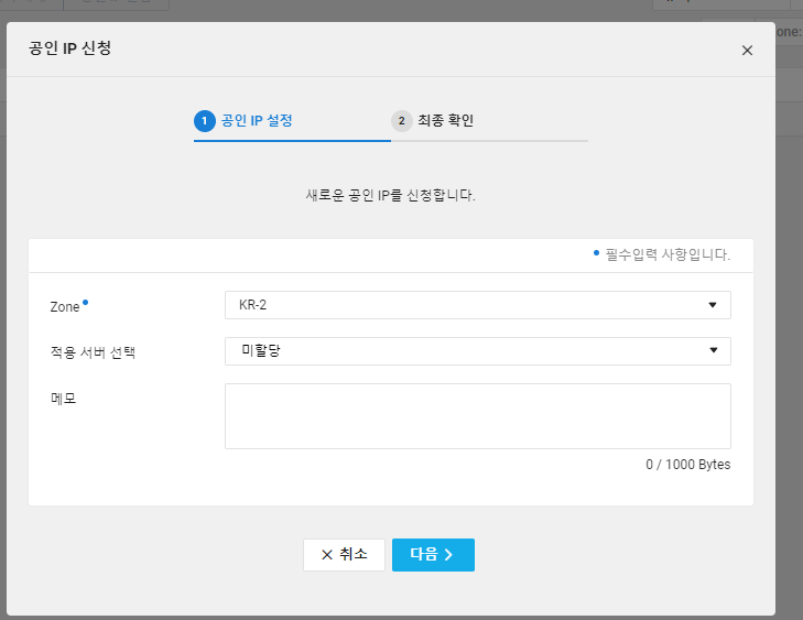 5. 서버가 생성 완료 하면 공인IP를 설정 해야 외부에서 접속이 가능하다. server탭에서 public IP 선택 후 적용서버에서 방금 생성한 서버 클릭 후 최종 확인 하면 된다.